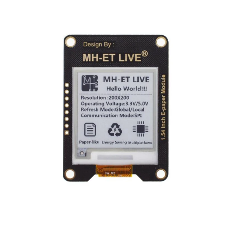 Az 1,54 hüvelykes, SPI interfészes e-papír modul egy e-ink (ePaper/eInk) kijelző, amelyet tiszta és hatékony megjelenítésre terveztek elektronikai projektekhez. Ez a modul olyan népszerű platformokkal kompatibilis, mint a Raspberry Pi, Arduino és STM32, így könnyen integrálható különféle fejlesztésekbe.