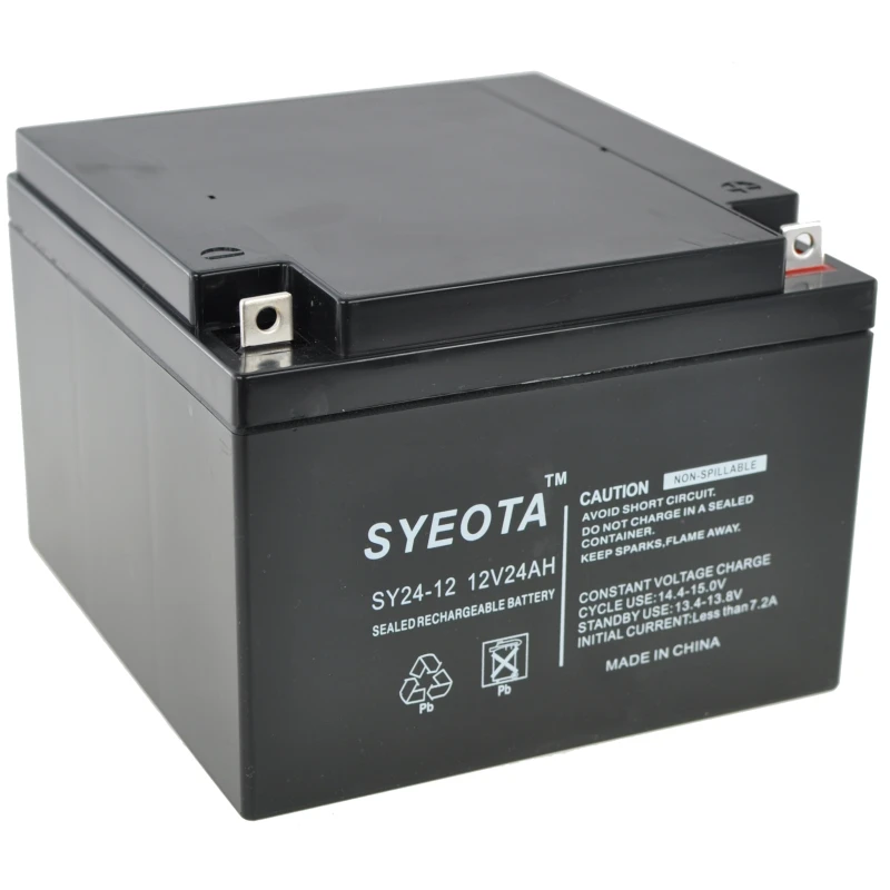 A SY24-12 zárt AGM ólomakkumulátor akkor előnyösebb, ha robusztusságra, alacsony amperóra-költségre, változó töltési ciklusok tűrésére és az ilyen típusú akkumulátorokra tervezett meglévő rendszerekkel való közvetlen kompatibilitásra van szükség. Lítium akkumulátorokhoz képest nehezebb és valamivel rövidebb az élettartama, viszont kevesebb elektronikus védelmi követelményt támaszt, és mérsékelt vagy alacsony hőmérsékletű környezetben jobban működhet.