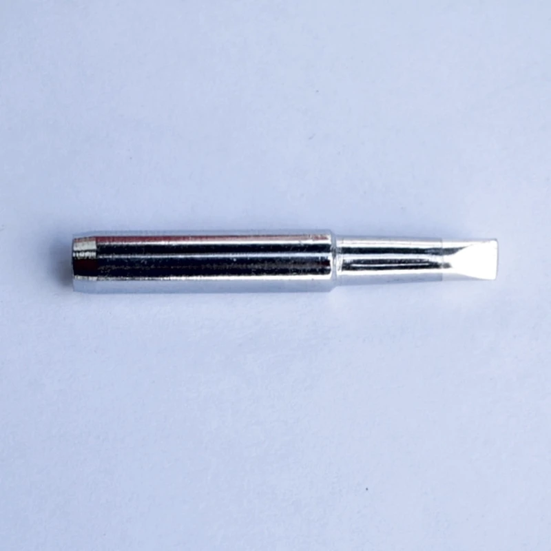 A T4d „chisel” (véső) típusú forma, 4,8 mm-es lapos éllel, kb. 43 mm teljes hosszal és 6,5 mm külső átmérővel az alján. Ezek a méretek szabványosak ennél a típusú alkatrésznél, és közepes teljesítményű forrasztási feladatokra alkalmasak.