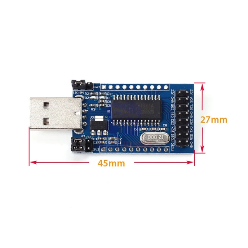 USB-t alakít át UART, I2C, SPI és párhuzamos port interfészekre, lehetővé téve az elektronikai eszközök programozását és hibakeresését.