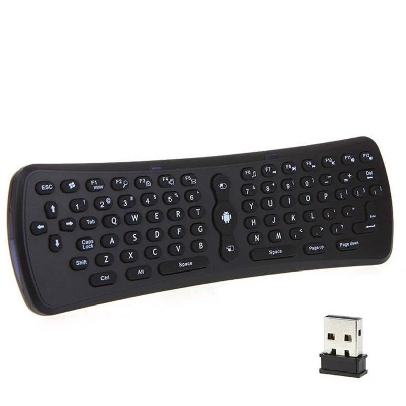 A T6 vezeték nélküli air mouse billentyűzet Android TV-hez ideális kiegészítő az Android TV Boxhoz vagy smart TV-hez. Ez a 3 az 1-ben eszköz távirányítóként, billentyűzetként és légegérként működik, így kényelmesen vezérelheted a készüléket a kanapéról vagy a szoba bármely pontjáról. A 2.4 GHz-es vezeték nélküli kapcsolatnak köszönhetően könnyen használható és beállítható: csak csatlakoztasd az USB vevőt az eszközhöz, és már élvezheted is.
