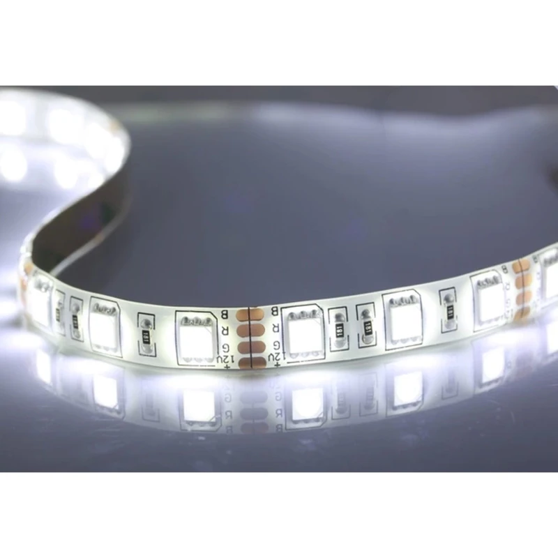 Kompatibilitás: Ez a LED szalag 12V DC tápegységekkel működik, amelyek kompatibilisek az SMD 5050 szalagokkal. Rugalmas kialakítása és az öntapadós hátoldal megkönnyíti a felszerelést különböző, akár sík, akár ívelt felületekre.