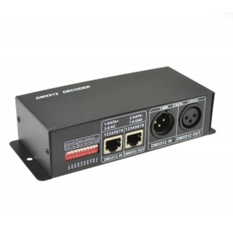 Kompatibilis a 12V vagy 24V DC feszültségen működő RGB LED szalagokkal és LED spotokkal. Könnyen csatlakoztatható szabványos DMX512 vezérlőpultokhoz a világítás fejlett kezeléséhez.
