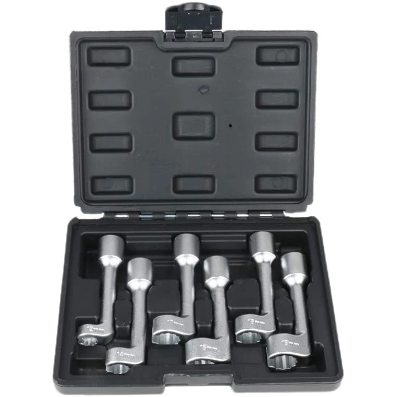 Ezt a készletet kifejezetten anyák és csavarok lazítására és meghúzására tervezték szűk helyeken, különösen az üzemanyag-befecskendező csatlakozásoknál. Pontos kialakítása lehetővé teszi, hogy különböző típusú dízelmotor-vezetékekhez pontosan illeszkedjen, megkönnyítve az injektorvezetékek leszerelését a legtöbb dízelmotoron.