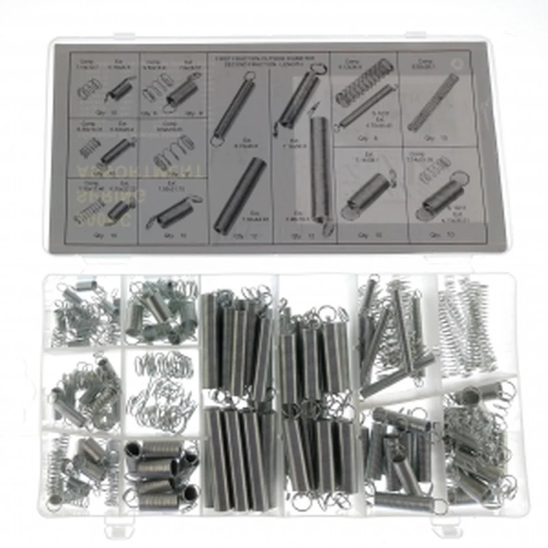 - 200 darabos válogatott nyújtó és nyomó rugó készlet