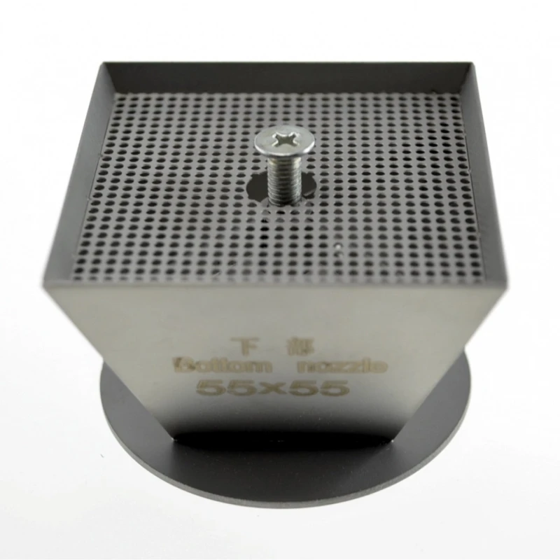 A Zhuomao ZM-R5860C ZM-R5860 méret 55x55 alsó fúvóka egy speciális cserealkatrész forrasztóállomásokhoz és reballinghoz. Ezt a fúvókát úgy tervezték, hogy szabályozott és pontos légáramlást biztosítson, ami alapvető az elektronikai forrasztási folyamatokban és a BGA alkatrészek javításában.